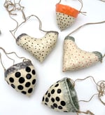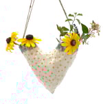 Pinched stoneware hanging bud vase with tiny peach polka dots. Strung with hemp twine, you can hang this cutie anywhere you’d like to add some fresh flowers to brighten up your space.